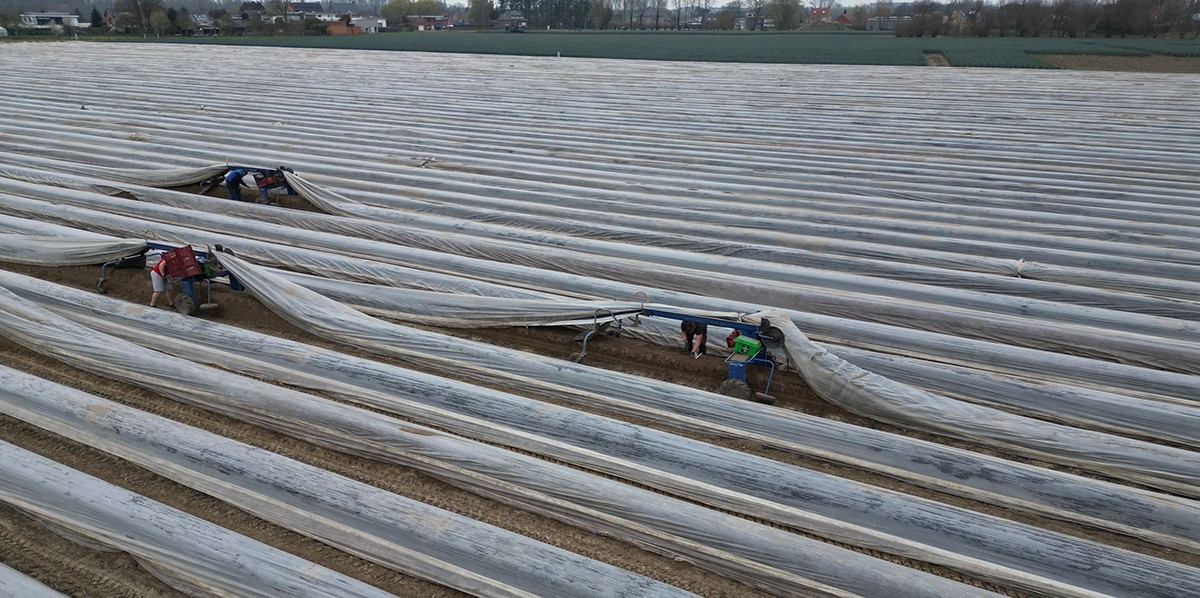 Marc en Hilde starten het bedrijf. De focus ligt meteen op asperges en spruiten, twee teelten die perfect passen bij de grond en het seizoen.